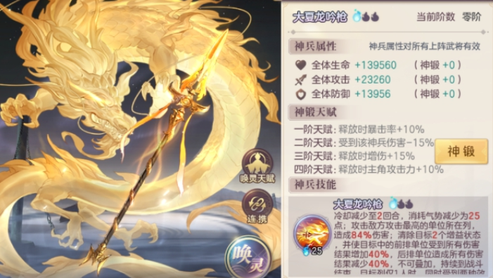 资源分配方面,建议优先培养吕布到无双品质,这是质变的关键节点。貂蝉和袁绍可以适当投入资源,但不用追求极限。其他辅助武将保持基本战力即可。神兵选择上,乾天玄灵扇和大夏龙吟枪都是不错的选择,前者能补足单体爆发,后者则能增强群体输出。战魂推荐爆裂冲击或怒焰灭袭,进一步提升吕布的爆发能力。