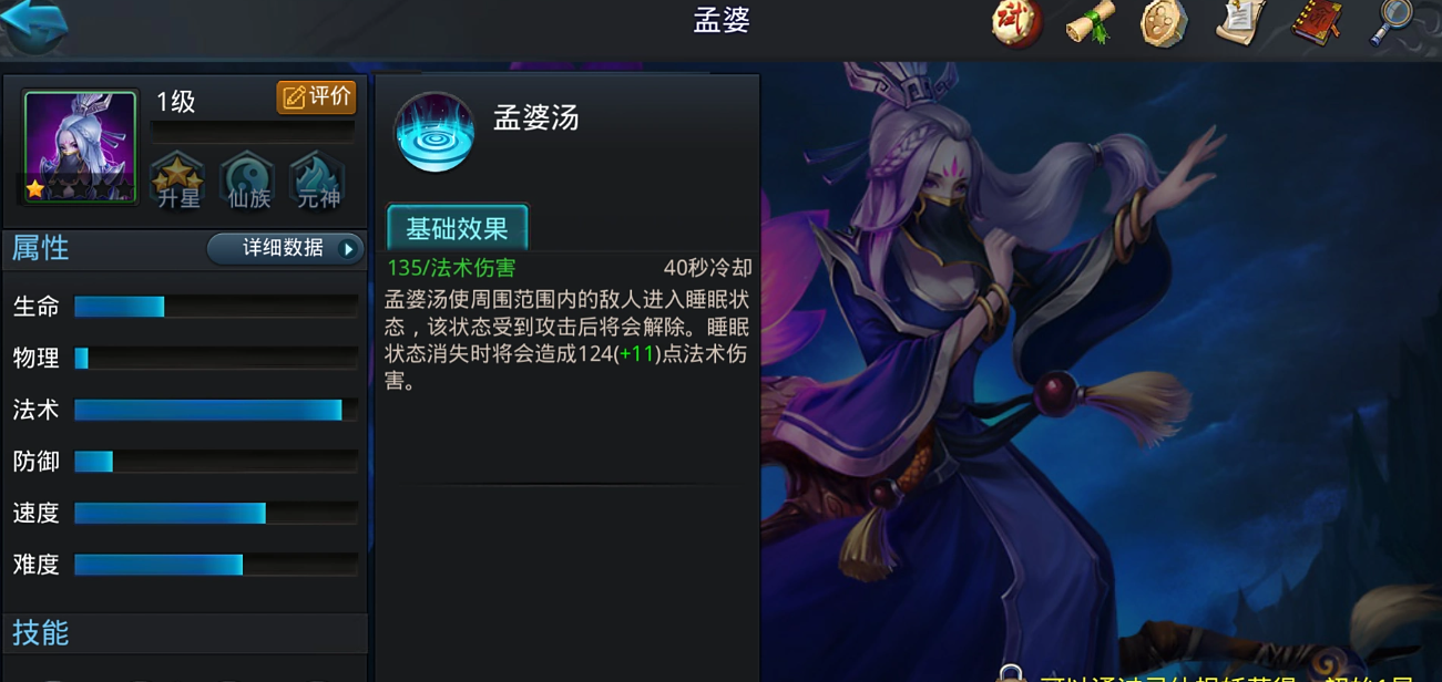 孟婆在乱斗西游中定位为辅助型法师,兼具控制与消耗能力,其核心优势在于技能组合提供的群体眩晕与睡眠效果。鬼枯藤作为先手控制技能,可在施放与消失时分别造成眩晕,配合彼岸花的远程消耗与孟婆汤的范围催眠,形成连贯的控制链。但需注意其生存能力较弱,需依赖队友保护或合理站位避免被集火。装备选择以法术穿透、攻速为主,提升技能频率与伤害效率,头盔推荐温香软语等增加法术穿透的装备。