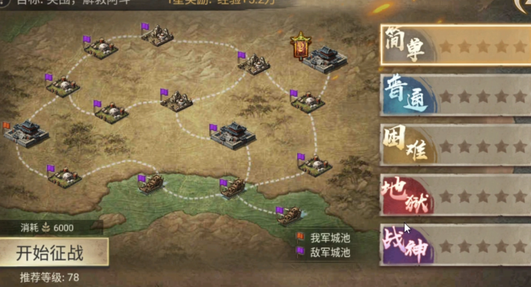 困难难度新增曹操支援机制,他会不断派兵增援主城北和南。建议优先占领曹军营帐阻断援军,否则敌军会越积越多。南山阶段可派司马刷2-3个影子,其他武将单挑一次后撤退补血再战。主城南可能出现34组敌军,需预留6-8个影子辅助单挑。拿下曹军营帐后记得立即领取1分钟奖励,否则援军会持续增加。后续流程与普通难度类似,但节奏要更快。