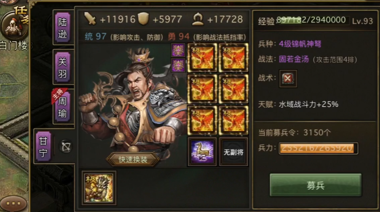 156级副本是难度较高的关卡之一,其特点是敌方武将战法为加强版天谴飓风且不可抵挡。前三个部将各带五排兵,战法可封四排;主将侯成带六排兵,战法封五排。通关关键在于合理的武将排布、装备搭配和战法释放时机。推荐使用陆逊、关羽、太史慈和赵云四位武将组合。陆逊装备极灵龟套装并带司马懿副将,主要作用是反弹敌方战法。关羽装备极驱虎套装,依靠四级溅射效果造成范围伤害。太史慈装备极烛龙套装,前三排混乱效果能有效控制战场。赵云则负责补刀和收割残血敌人。这种配置能在晶石等级不高的情况下实现通关。