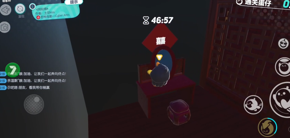 蛋仔派对阴阳婚是一张充满中式恐怖氛围的解谜地图,咱们需要帮助蛋仔在诡异的婚礼现场找到线索并逃出生天。开局会看到两具棺材和红白相间的装饰,记得先收集房间里的婚服、小刀、红包等关键道具,这些在后面解谜中非常重要。过程中要注意观察场景细节,比如桌上的茶壶、柜子上的红纸、箱子里的钥匙,它们都可能藏着通关密码。如果遇到卡关可以多试试互动按钮,有时候答案就藏在不起眼的角落里。