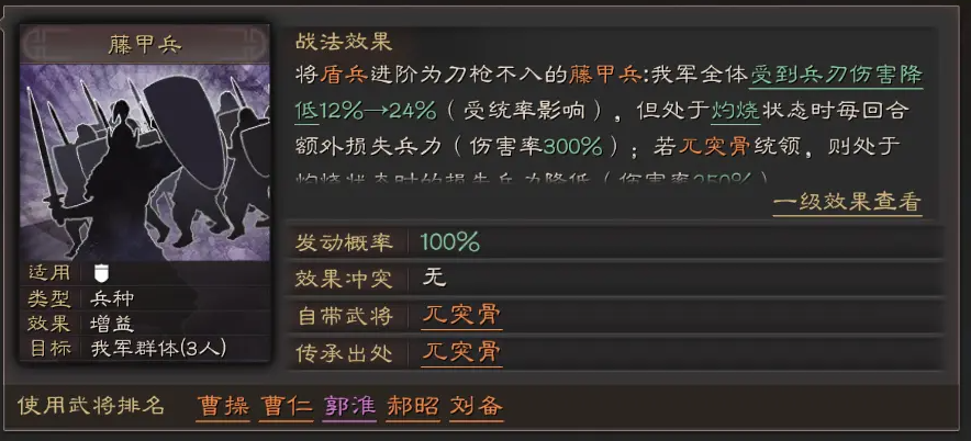 不过玩非国家队也要心里有数,它对战法质量和武将技能的要求往往比较高。很多关键战法是稀有级别的,获取和培养成本不低,而且队伍里如果用了多个稀有战法,可能会影响到你组建其他队伍的选择,也就是常说的共存问题。像依赖藤甲兵的队伍,遇到带火的敌人时就会比较被动,这属于阵容天然的短板,需要咱们在实战中注意避开克制或者提前准备好应对方案。所以选择非国家队时,得结合自己手上的武将和战法资源来权衡。