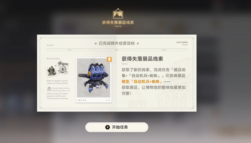 任务的第一步要求玩家根据任务指引寻找于尔丹馆长。于尔丹馆长通常位于历史文化博物馆内,玩家需通过地图导航或路径标记快速定位其位置。与于尔丹对话后,玩家将了解本次藏品的具体情况和背景信息,这为后续行动提供必要方向。这一步是任务的基础,确保玩家明确目标藏品为自动机兵蜘蛛相关物品。