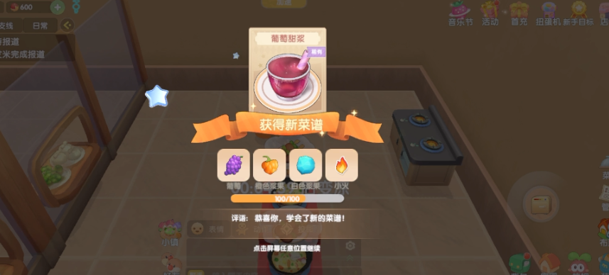 除红色浆果外,制作葡萄甜浆还需获取葡萄和橙色浆果,葡萄作为特产材料,可能出现在玩家家园或好友庄园中,若玩家家园未种植葡萄,需访问好友的庄园进行采集 。橙色浆果则主要分布在牧场区域,包括梅森牧场附近的小路和隐藏树林,玩家在牧场探索时容易发现其踪迹;所有食材在添加前必须彻底清洗,以去除杂质确保烹饪质量。材料准备齐全后,玩家应优先处理红色浆果,检查其新鲜度,避免因腐败影响整体效果。