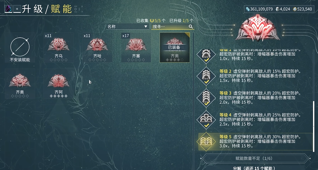 制作出增幅器只是开始,将其升满至30级后,你可以前往对应NPC处进行镀金操作。镀金不仅能赋予增幅器独特的外观,更重要的是能永久提升其暴击率与触发率等基础属性,并且只有镀金后的增幅器再次练满等级,才能提供段位经验。虽然增幅器本身是指挥官武器,但游戏核心的MOD系统依然是提升其最终伤害的根本途径,你需要为它安装并升级增加基础伤害、暴击、触发以及元素伤害等MOD。通过使用奥罗金催化剂增加MOD容量,以及使用福马进行极化来降低MOD消耗,你才能将高等级的增强MOD装备上去,从而真正释放出所选增幅器配方的全部潜力。