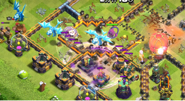 狂暴法术是雷龙流的进攻发动机,其使用时机非常关键。通常在刚放下主力雷龙部队时,就应该在它们的行进路线上平铺1到2瓶狂暴法术,这能立刻提升雷龙的伤害和攻击速度,帮助它们快速清理外围建筑并打开突破口。当部队进入阵型中心,遭遇天鹰火炮、X弩等高血量核心防御时,需要根据情况补放狂暴法术,以集火快速摧毁这些关键目标,避免部队被长时间消耗。狂暴法术不仅要给雷龙用,也要覆盖那些为你探路和辅助的气球兵,让整体推进更加犀利。