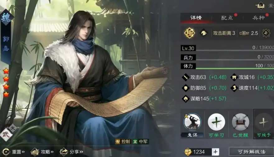 四星荀彧是一位性价比极高的谋略武将,完全能够围绕其组建出强度可观的队伍。他的核心价值在于自带战法驱虎吞狼,能对敌方全军造成策略伤害并附加两回合的禁疗效果,这一特点让他成为克制肉步和依赖回复的队伍利器。组建强队的关键思路是放大这一优势,为他搭配能够提供稳定控制或增伤效果的队友,从而构建一个能抗能打、利用禁疗建立优势的作战体系。常见的思路是激活阵营加成,选择同为魏国的四星郭嘉、曹仁等武将进行搭配,既能获得属性提升,又能形成技能互补。