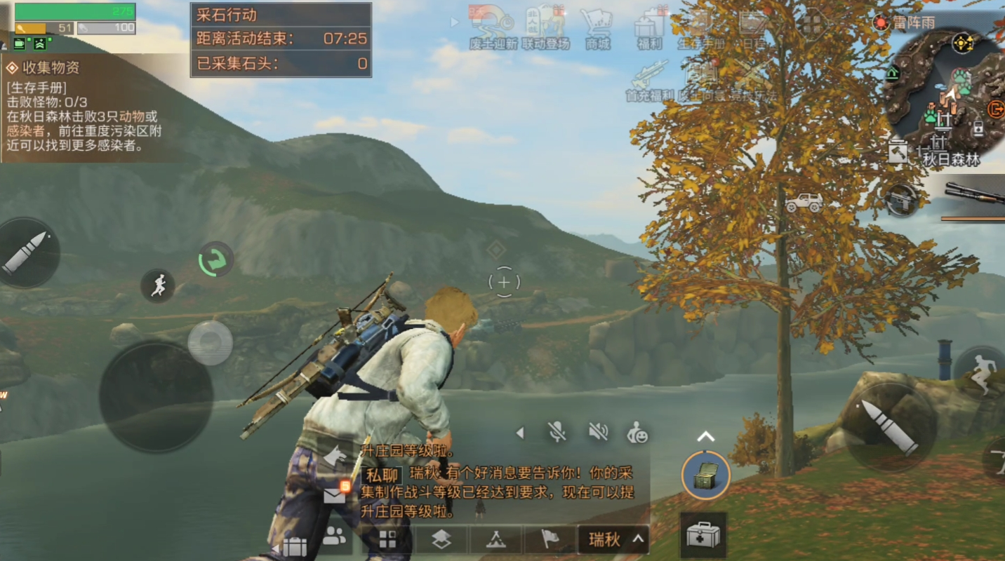 农田开垦后需要定期维护,比如清除杂草或补充种子。秋日森林的NPC布兰肯偶尔会在安全屋附近刷新,提交硬心石或硬心木给他能换取新币奖励。白天还能遇到探险家瓦尔德或摄像师朵落希,完成他们的藏宝图或拍照任务能获得额外资源。夜晚记得回到安全屋生火取暖,避免低温掉血或遭遇游荡的感染者。