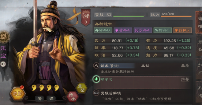 属性加点与兵书选择直接影响实战效能。张角与张宝建议全智力加点,最大化其谋略伤害与战法发动率加成;张梁推荐全统率加点以强化防御能力。兵书方面,张角适用急战突围、将威与鬼谋,侧重提升输出稳定性与爆发力;张宝与张梁则适合分而急战与救主,增强团队生存与续航。