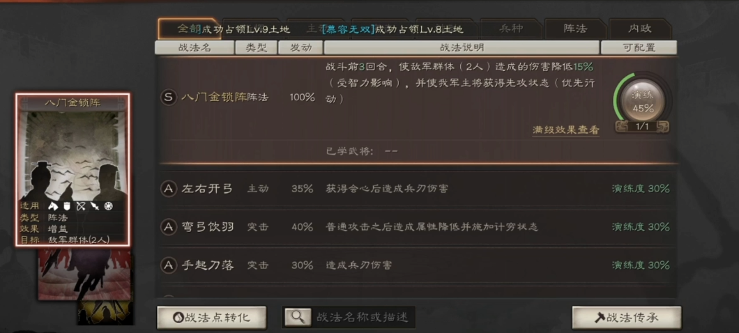 战法搭配需与武将角色高度协同,强化队伍协同性。防御型武将如曹仁优先选择控制类战法,例如八门金锁阵,以限制敌方行动并保护队友;输出型武将则应搭配伤害增益或群体控制战法,提升战场主导力。战法选择还需考虑概率和效果稳定性,优先选用高触发率的技能,减少随机性影响。新手期遗忘战法可返还战法点,利于初期实验优化组合。