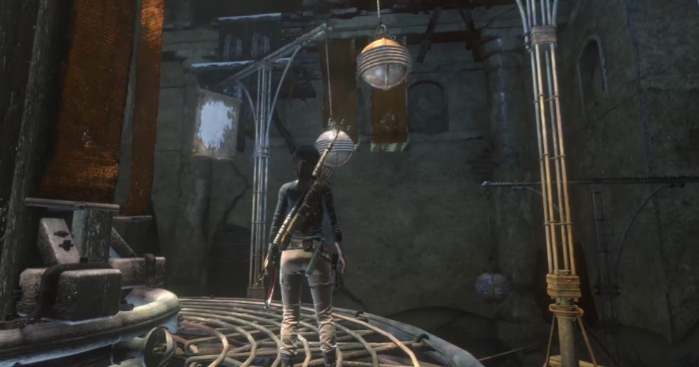 进入不死军团通道后,需利用宽头攀爬箭矢搭建路径跨越软木墙。第一处难点是连续跳跃多支箭矢搭建的悬空平台,需注意箭矢射入墙体的颜色提示:绿色表示可共存路径,红色会覆盖原有箭矢,紫色则距离过远无法移动。后续遇到太阳系仪机关时,需分两部分解谜:先调整杠杆平衡锤搭建通路至左上方平台,再启动旋转装置跳至出口。过程中需精确控制劳拉的跳跃时机,避免坠落。