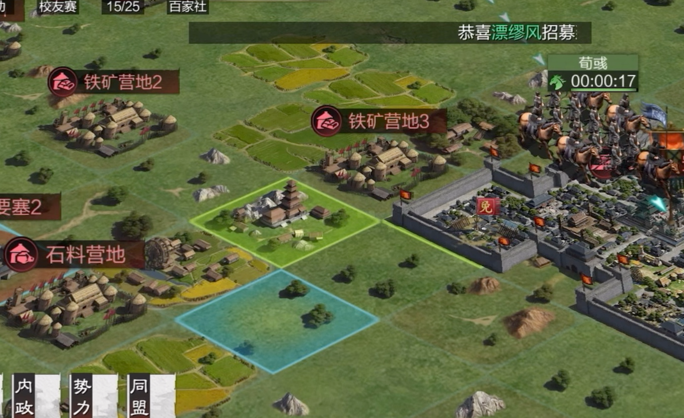 获取石料最基础的方式是派遣部队采集山地资源点,初期