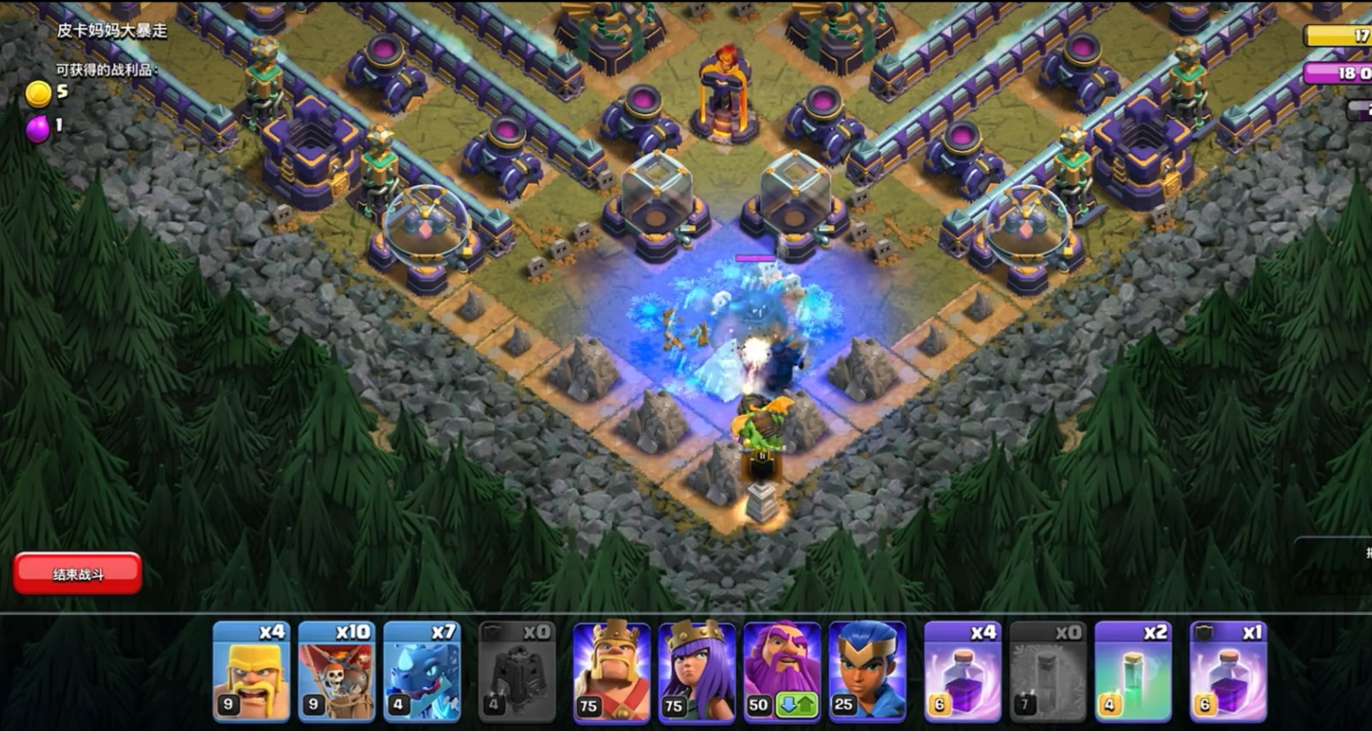 兵种搭配上,选择熔岩猎犬、飞龙宝宝、超级亡灵等对空强势单位,熔岩猎犬可以吸收大量防空伤害,为后方巨龙和气球兵创造输出环境,飞龙宝宝机动性强,能快速清理侧翼建筑与零散防守单位,防止巨龙跑偏。援兵选择地狱龙、超级飞龙这类高伤对空兵种,配合毒药法术能快速压制敌方援军与巨龙集群,毒药法术不仅降低敌方单位攻速移速,还能持续造成伤害,是处理龙援兵和集群巨龙的核心法术。英雄方面,弓箭女王远程点杀防空与残血巨龙,蛮王与守护者在前排抗伤、清理路径,三者配合能形成完整的攻防体系。